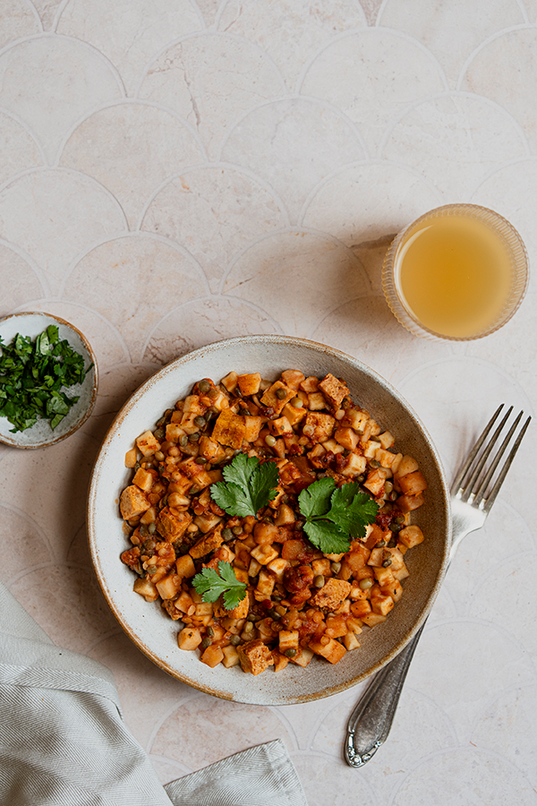 A comforting, satisfying hash built on a wholesome base of soft potatoes, sweet potato, tofu, and a duo of lentils. We bring it all together in a rich, paprika-infused tomato sauce finished with savory nutritional yeast. It’s a beautifully balanced, fully plant-based meal designed to keep your digestion happy.