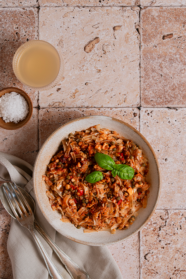 Comforting instant pasta, mixed lentils, and vibrant vegetables in a rich, savory tomato sauce. We’ve combined beautifully soft rice noodles with protein-packed quinoa, red and green lentils, crisp carrots and red peppers. Finished with warming herbs and umami-rich nutritional yeast, this is a deeply satisfying, Italian classic that delivers massive flavour without upsetting your digestion.